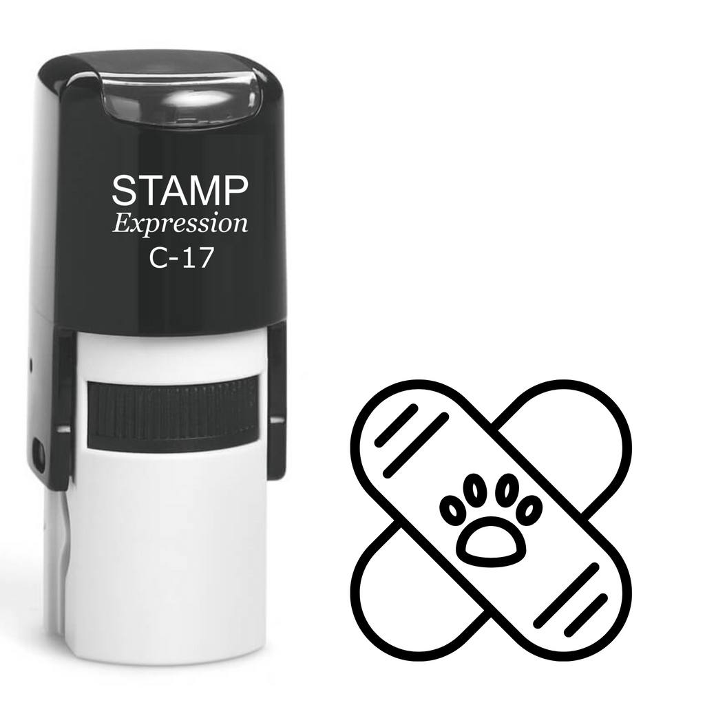 Criss-cross band-aid with paw print Self Inking Rubber Stamp (SH-63906)