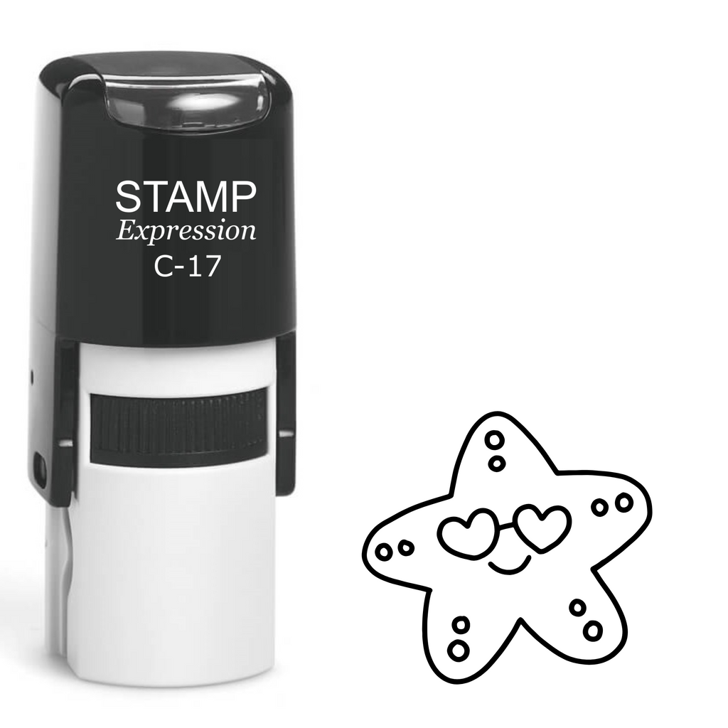 Cute baby starfish outline with heart glasses Self Inking Rubber Stamp (SH-62978)