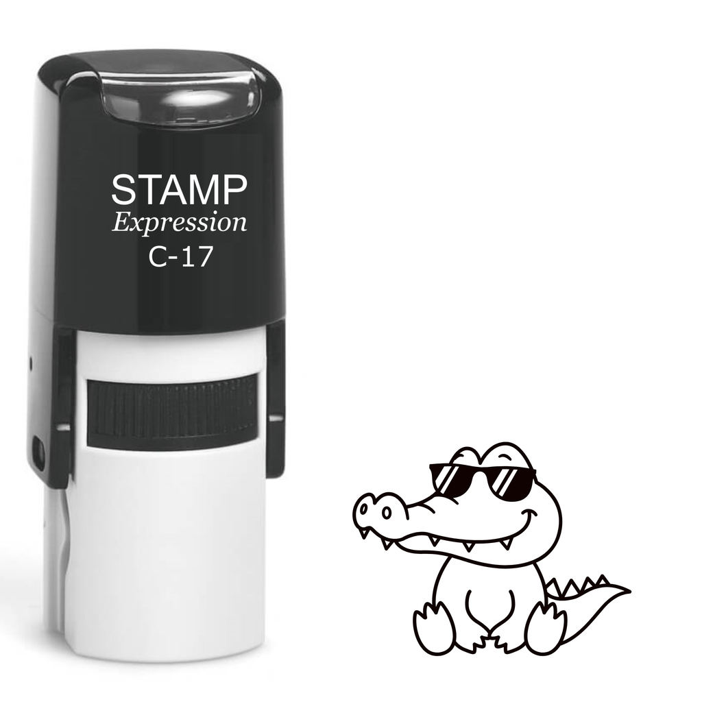Cute sitting baby alligator wearing sunglasses Self Inking Rubber Stamp (SH-63484)