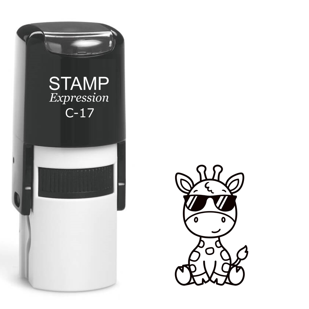 Cute sitting baby giraffe wearing sunglasses Self Inking Rubber Stamp (SH-63491)