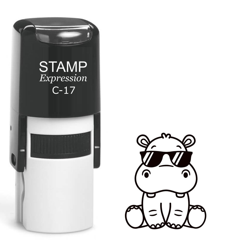 Cute sitting baby hippo wearing sunglasses Self Inking Rubber Stamp (SH-63487)