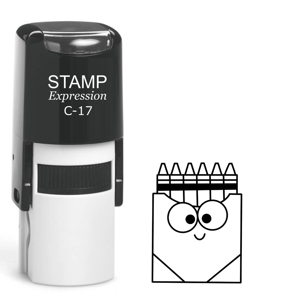 Googly-eyed box of coloring pencils school teacher classroom Self Inking Rubber Stamp (SH-64017)