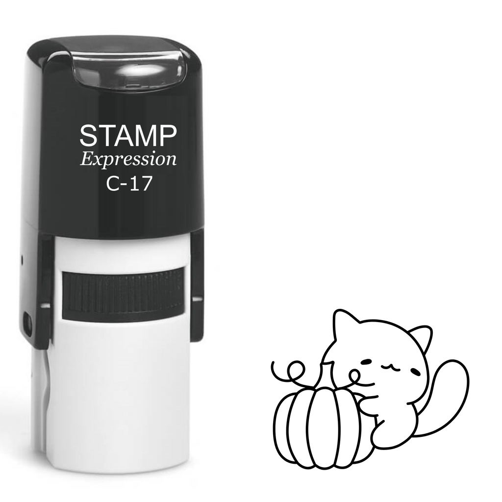 Halloween cute kitten with pumpkin Self Inking Rubber Stamp (SH-62748)