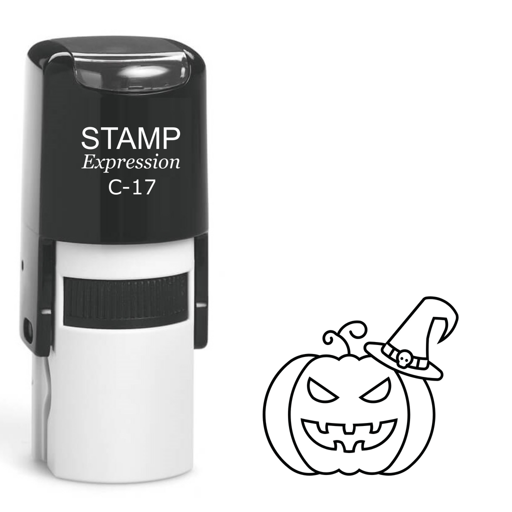 Halloween Jack-O-Lantern with a small witch hat Self Inking Rubber Stamp (SH-62721)