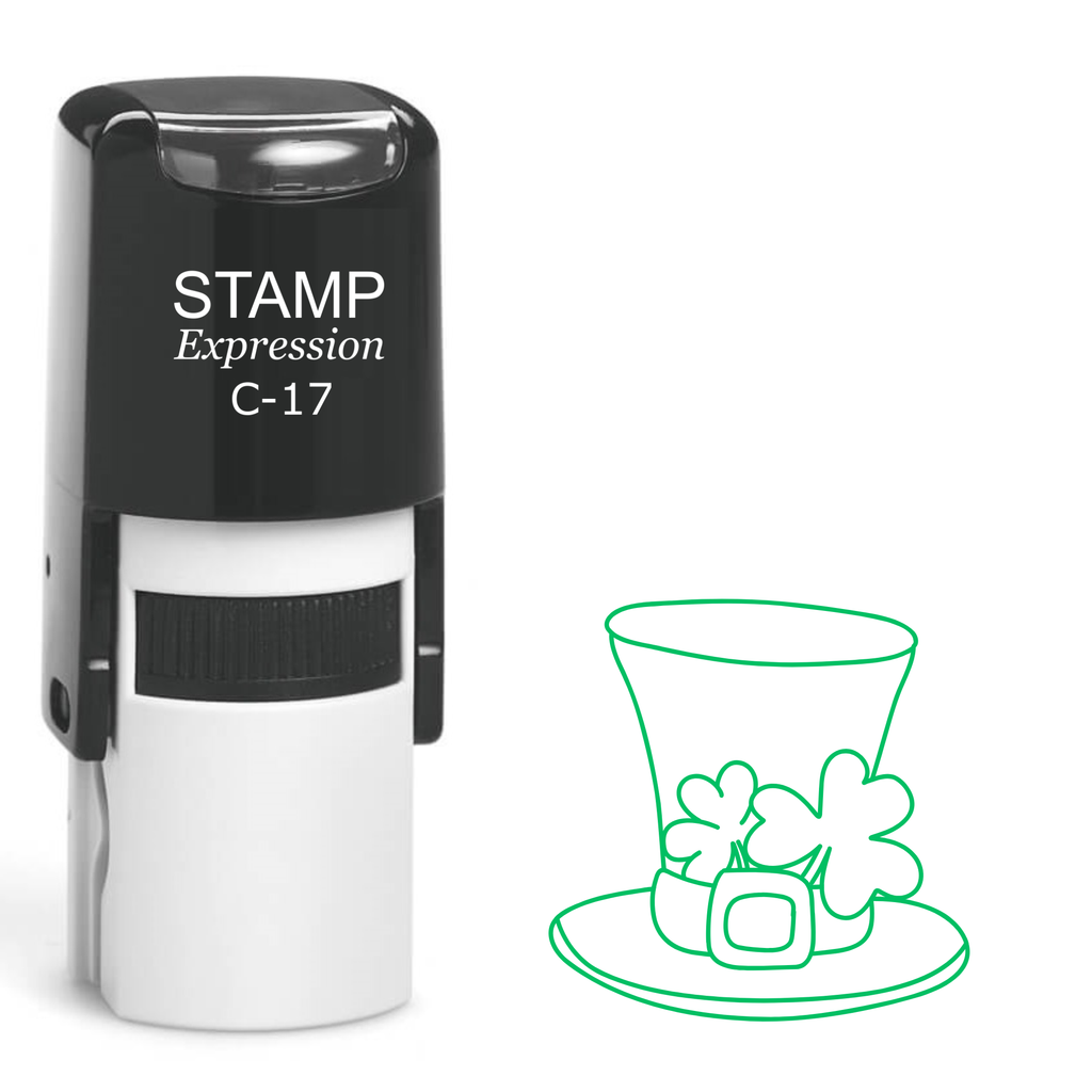 Leprechaun hat with two shamrocks St. Patrick’s Day Self Inking Rubber Stamp (SH-63784)