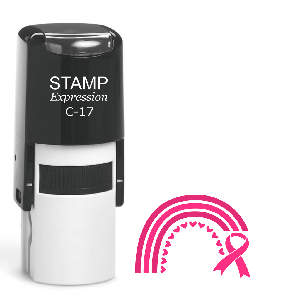 Pink rainbow with hearts and breast cancer ribbon Self Inking Rubber Stamp (SH-63728)
