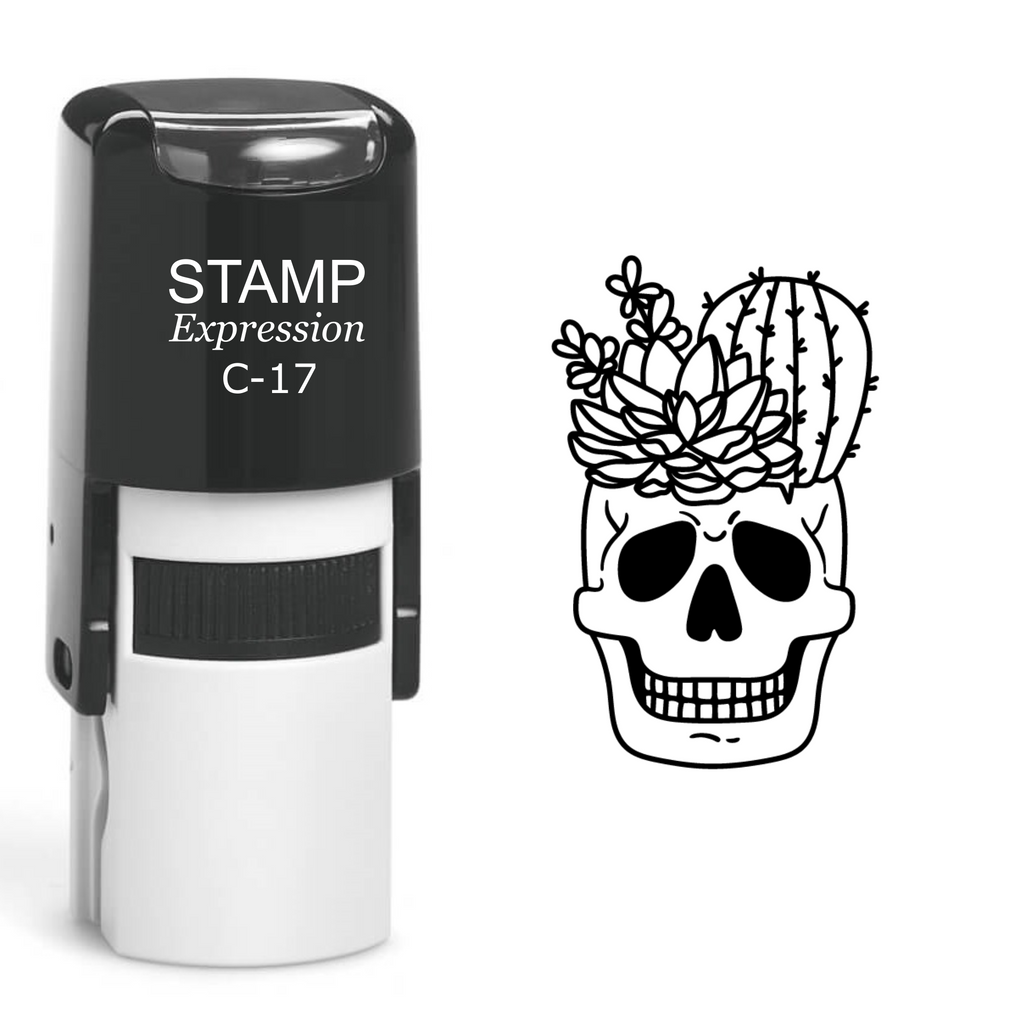 Skull With Flowers Self Inking Rubber Stamp (SH-60526)