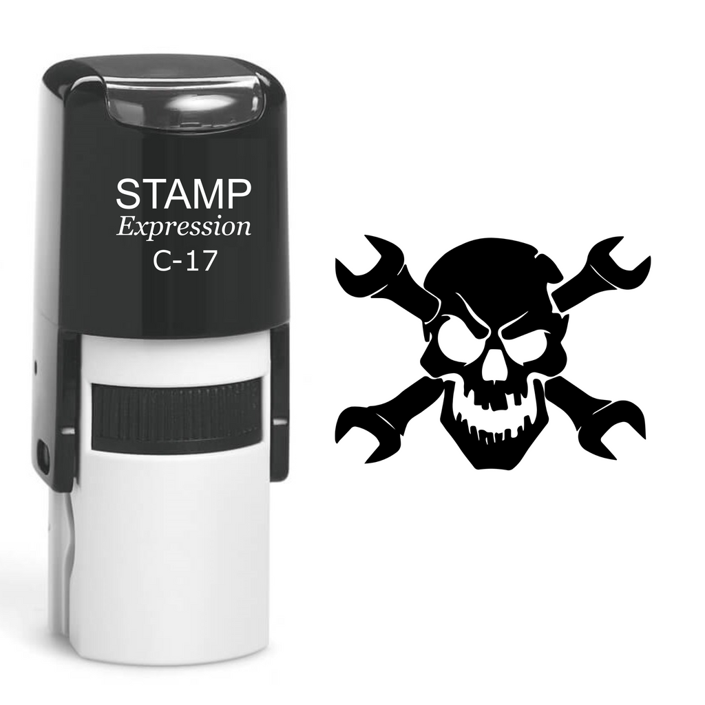 Skull With Wrenches Self Inking Rubber Stamp (SH-60496)