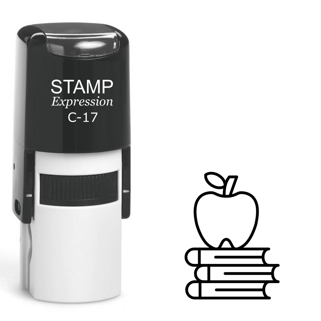 Three books with an apple school Self Inking Rubber Stamp (SH-62753)