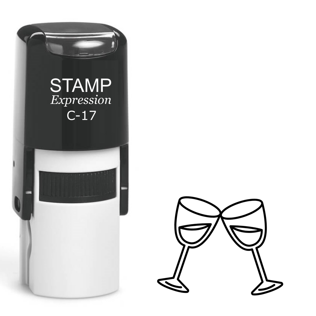 Two clinking wine glasses new year or wedding Self Inking Rubber Stamp (SH-62778)